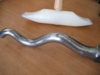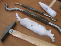 Below are pictures of the tools used in this technique, ranging from the large metal stake and hammer on the left, used for massive objects, to the smaller plastic stakes and metal hammers, used for smaller objects such as jewelry.